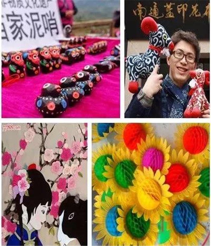 舞龙、舞狮、扭秧歌,捏泥人、剪纸等