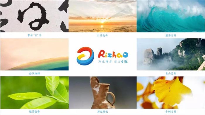 日照旅游形象以中国传统书法中草书“日”字为创意灵感来源,将中国传统文化、日照太阳文化与日照核心旅游资源巧妙结合。