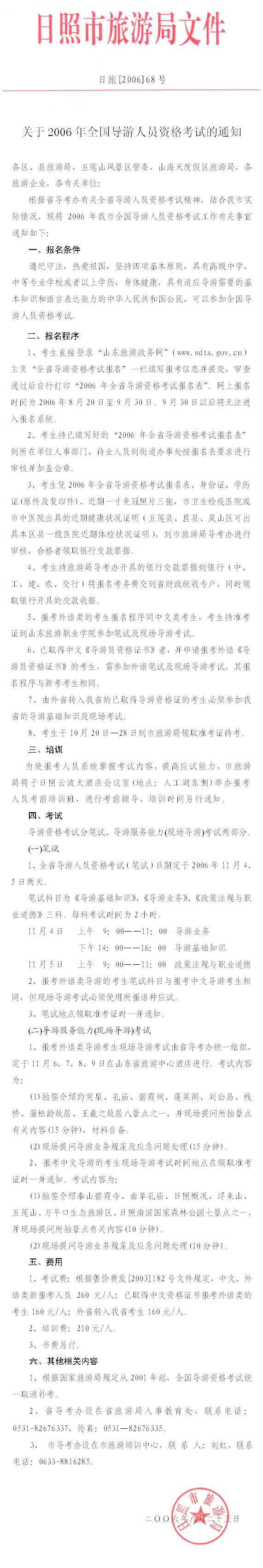 公告 关于2006年全国导游人员资格考试的通知(2006年08月24日)