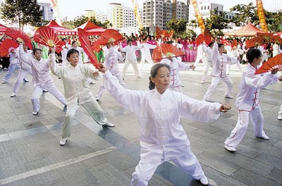 10月24日,为贯彻落实“和谐中国、全民健身”的十一运会办赛主题,十一运会日照赛区组委会和市体育局举行的全民健身系列活动拉开帷幕。启动仪式上,来自我市各社区的22只代表队表演了腰鼓、健身秧歌、太极功夫扇等节目。