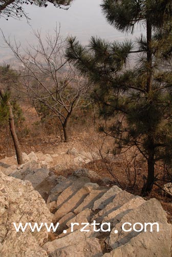 休息过后, 大家决定向崮顶冲刺!通向崮顶需要经过一条天梯,看上去它几乎是悬挂在崖壁上的,让人望而却步。朋友们互相鼓励着,小心翼翼的向崮顶爬去。而自己根本不敢回头看,只好硬着头皮,紧紧抓住景区设置的安全栏,手脚并用艰难的攀登。还好不用很长时间,终于爬到了略为平坦的崮顶。龙凤塔便呈现在大家面前。
