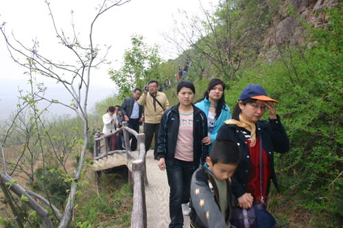 当日清晨,天津的游客来了,烟台的游客来了,接近400人的徐州大巴车队也来了。1000多位游客走在鲜花盛开、绿意葱茏的栈道上,阴沉的天气丝毫没有影响他们的快乐心情,好像映入眼中的绿更浓了,水更清了。客人们先后参观了画廊溶洞、体验了探险漂流和高山滑草。部分人员入住景区怡然居酒店。