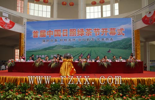 日照市委副书记、市长赵效为在致辞中向前来参加绿茶节的展商介绍了日照作为北方绿茶生产基地的优势。在致辞中说到,日照区位优势独特,生态环境优美,拥有“亿吨综合大港、临港产业基地、阳光度假海岸、水上运动之都、生态宜居家园、大学科技园区、历史文化之城和北方绿茶之乡”八张亮丽的城市名片。日照是“北方绿茶之乡”,现有茶园12万亩,年产茶约6000吨,分别占山东省的50.4%和74.5%,已成为秦岭、淮河以北规模最大的绿茶生产基地。近年来,我们先后举办了中国(日照)国际工艺品博览会、中国(日照)国际茶博览会等系列活动,对于促进日照经济社会发展、提高城市知名度和美誉度起到了重要作用。