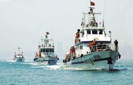 图 日照边防支队在山东边防总队的协助下,加大海巡力度,确保比赛海域安全。