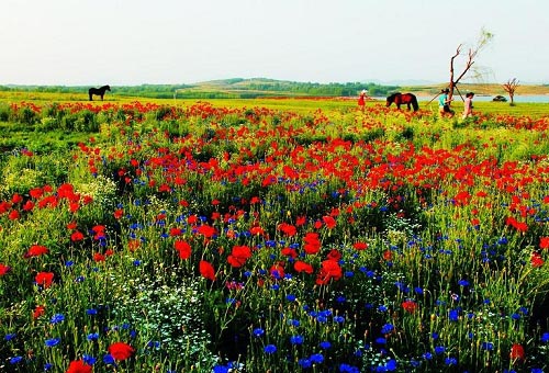 西湖镇招商引进的花卉基地,近日鲜花怒放,风光迷人.