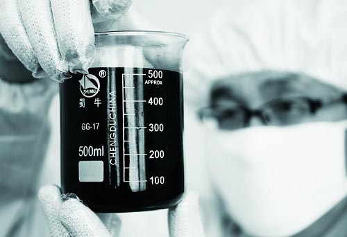 6月10日,在日照聚丰食品有限公司实验室,工作人员观察腰果壳油。日照聚丰食品有限公司尝试利用加工腰果产品的下脚料腰果壳生产腰果壳油,再用腰果壳生产木炭,获得成功,并于近日开始正式生产。日照聚丰食品有限公司每年加工腰果产生腰果壳14000多吨,这些下脚料可生产腰果壳油3500多吨。利用腰果壳榨油,实现了变废为宝,为企业带来了可观的经济效益。