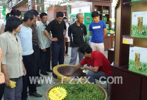 6月20日,在日照百货大楼银海绿茶销售专柜,清新扑鼻的茶香吸引了不少驻足观看的市民。 为了让广大市民了解银海绿茶的生产加工过程,加深对银海绿茶的认识,提高银海绿茶的知名度,银海茶业邀请了炒茶师进行现场炒茶。在现场,爱茶的市民可观看茶叶制作的全过程,领略茶技师的精湛茶艺,同时还可以品味新茶的清香馥郁。