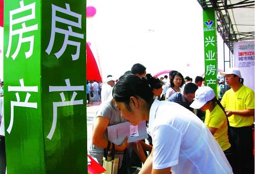 连日来,在万平口海滨生态广场拉开帷幕的2009中国·日照房地产博览会吸引了大批市民和游客驻足咨询。在现场,不少房产销售公司推出了团购等各项优惠活动,想买房的朋友可别错过这个机会。 图片说明:仅7月22日当天,兴业四季春城展厅就售出7套房子。 (本报记者 孟锋 摄)