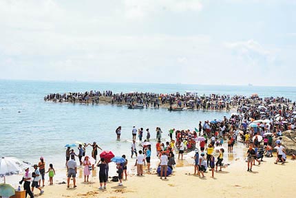连日来,港城日照天气晴朗,温度适宜,蓝天、白云、金沙滩吸引了来自四面八方的游客,到这里游泳戏水、赶海拾贝,摄影采风。旖旎的海滨风光令游客迷醉,流连忘返 。各大海滨风景区游人爆满。