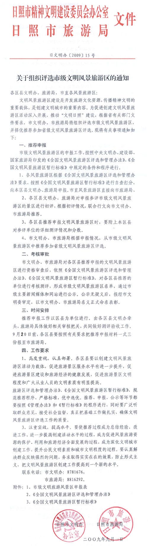 公告 关于组织评选市级文明风景旅游区的通知(2009年09月02日)