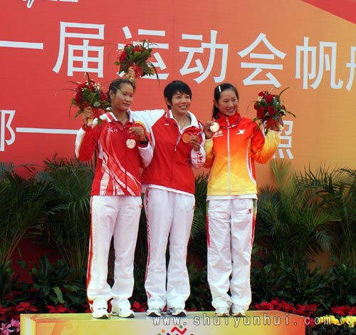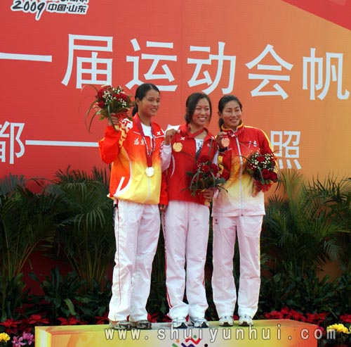 帆船女子米氏级场地赛金牌被山东队朱华丽获得(中)