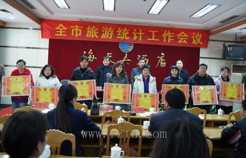 会议表彰了2009年全市旅游统计工作先进单位和先进个人,东港区旅游局、五莲山风景区管委会、山海天旅游度假区旅游局等11家单位被评为日照市旅游统计先进单位,秦培正、胡文花、王延喜等11人被评为日照市统计先进个人。