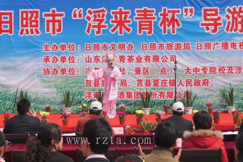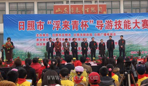4月17日,由日照市文明办、市旅游局、日照广播电视台主办的2010年日照市“浮来青杯”导游技能大赛在山东浮来青生态园举行。来自全市各旅行社、景区(点)、大中专院校及各涉旅单位共50余名导游参加本次大赛。