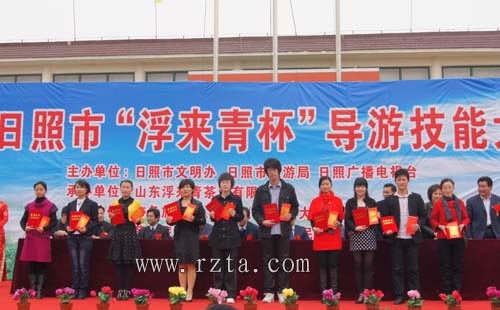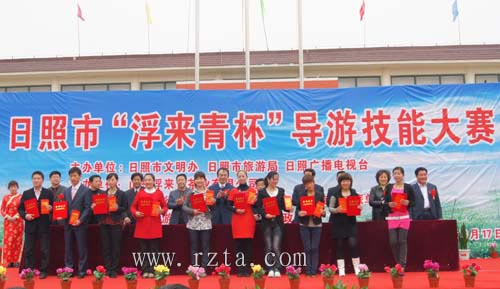 4月18日,2010年日照市“浮来青杯”导游技能大赛在山东浮来青生态园圆满结束。日照市政协副主席董全宏,日照市委宣传部副部长、市文明办主任郭长海,日照市旅游局局长王立新等领导出席大赛并颁奖。