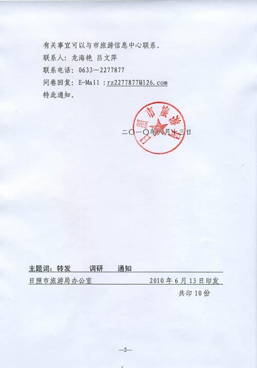 关于转发《山东省旅游局转发国家旅游局<关于旅游信息化调研的通知>》(2010年06月13日)