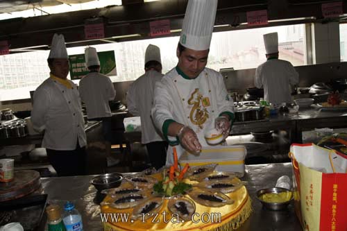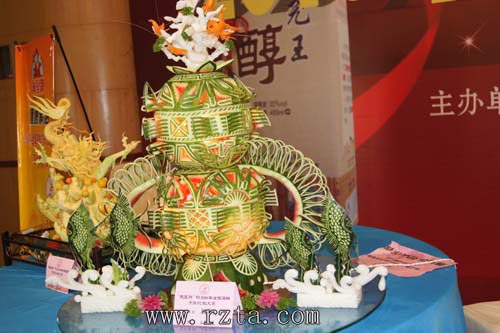 比赛过程中,各参赛选手拿出看家本领,展示自己别具匠心的创意作品。现场有用南瓜雕刻的太公垂钓,有用萝卜雕刻的海底戏浪,也有用两个西瓜镂空雕刻的水上宫灯……原本其貌不扬的瓜果、萝卜、香芋等食品,在参赛选手的巧手下,竟变成了形态各异的具有美学价值的艺术品。肥硕的海参,碧绿的青葱,再配上乳白色的象拔蚌,让人垂涎欲滴。冷菜拼盘里,大师杂技般的手法和鬼斧神工般的刀法将让大家体验到中国烹饪的神奇艺术效果。一道道色、香、味、型俱佳的美味菜品,在灯光下泛出诱人的光泽,赢得了在场观众的一阵阵喝彩。