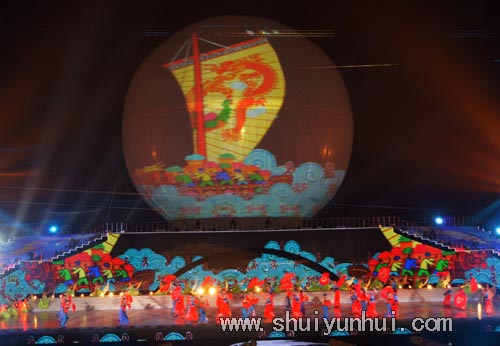 最后,文体表演在2010年中国水上运动会主题歌《同一片海,同一个家》的旋律中落下帷幕。