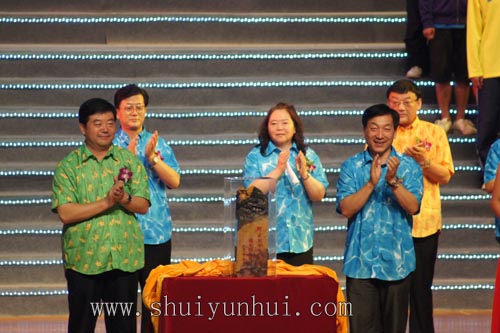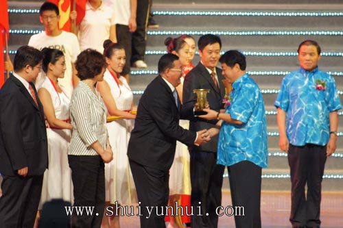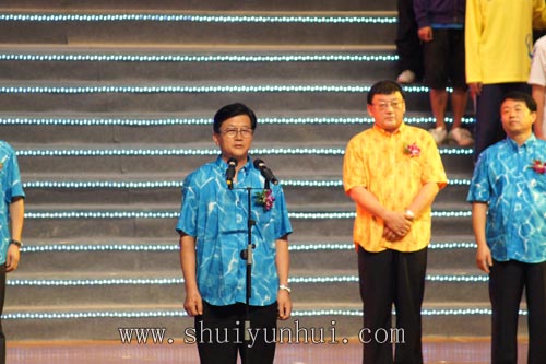 9月8日晚,“五征·奥驰汽车杯”2010中国水上运动会闭幕式在日照会展中心举行。山东省人大常委会副主任崔曰臣,国家体育总局竞技体育司副司长王鹏鹏,组委会副主任、国家体育总局水上运动管理中心主任王渡,组委会执行主任、山东省体育局局长张洪涛,组委会执行主任、中共日照市委副书记、市长赵效为,中共日照市委副书记孙海亭,组委会副主任、中共日照市委常委、宣传部长毛继春等领导出席本次闭幕式。组委会副主任、日照市副市长解世增主持。