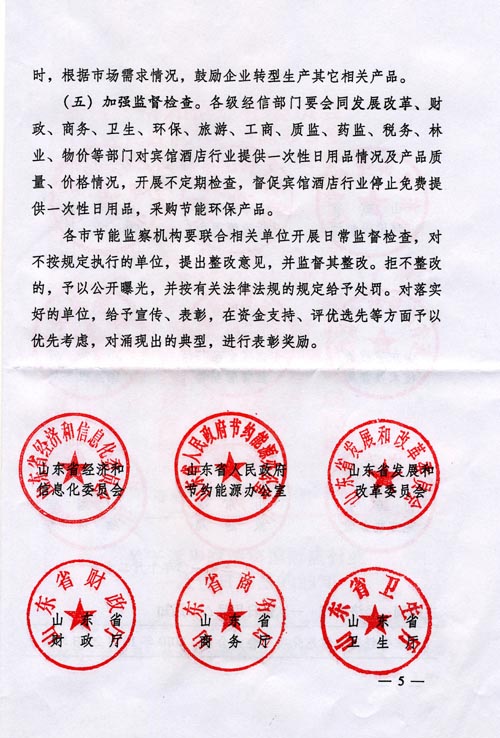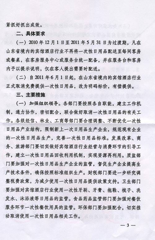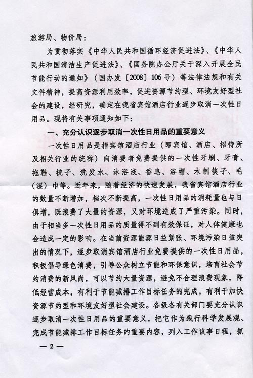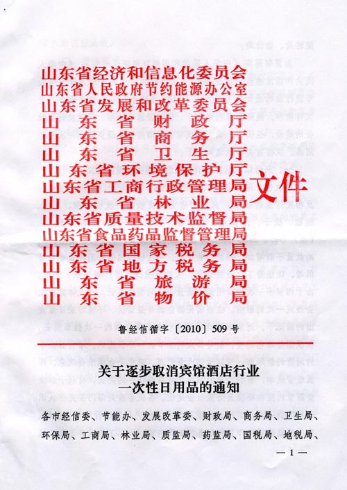 关于逐步取消宾馆酒店行业一次性日用品的通知(2010年11月15日)