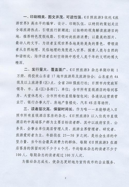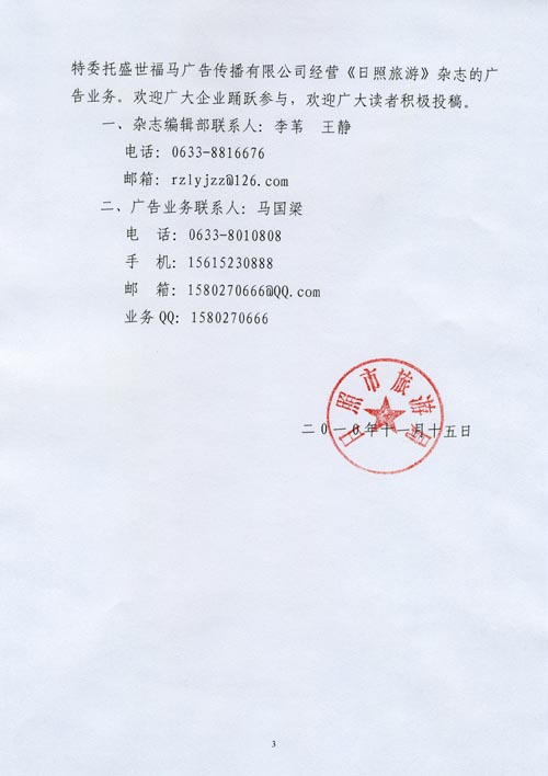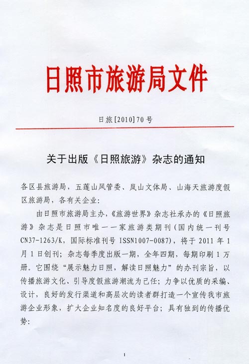 关于出版《日照旅游》杂志的通知(2010年11月26日)