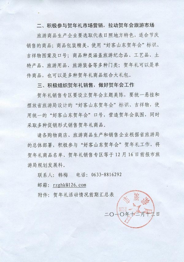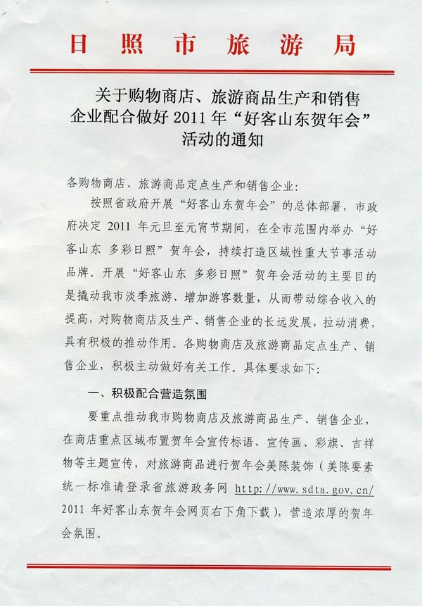 关于购物商店、旅游商品生产和销售企业配合做好2011年“好客山东贺年会”活动的通知(2010年12月14日)