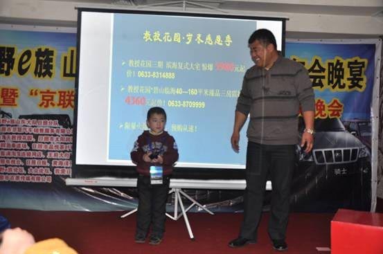 12月19日,山东越野e族日照分队在日照举办越野比赛,山海天城建集团给予支持和帮助。活动晚宴在日照山孚大酒店举行,山海天城建集团客户服务中心与越野e族成员共聚一堂,并进行了产品推介。 整个推介过程轻松愉悦,其间穿插抽奖、现场提问、赠送购房代金券等互动环节,活跃了现场气氛。 山海天城建集团对其集团旗下项目的发展历程、物业服务、社区活动、客户关怀、教授花园品牌特色以及近期的销售促销信息等诸多内容详细介绍,现场客户反响热烈。 教授花园三期和碧山临海作为滨海精品楼盘,吸引了越来越多的本地人在这里购房置业。优越的临海位置、优秀的物业服务、高水平的规划设计,让居住者品味高贵和惬意的宁静。