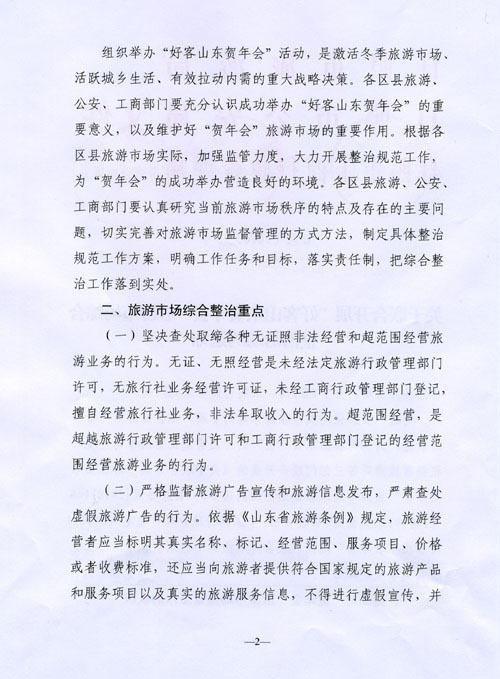 关于联合开展“好客山东贺年会”旅游市场综合整治活动的通知(2011年01月04日)