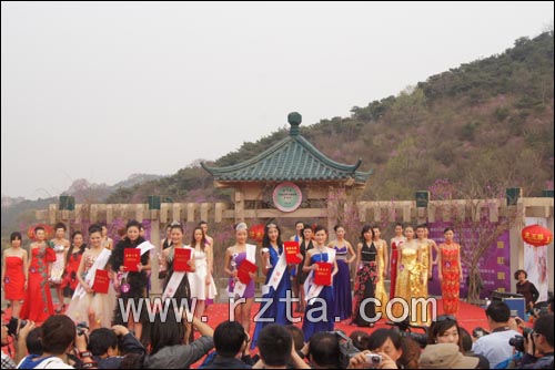 4月14日,2011届世界旅游小姐大赛江北赛区总决赛暨第五届“五莲之春”杜鹃花节开幕式,在日照市五莲山旅游风景区拉开序幕。来自全国十多个城市的三十余名佳丽进行了激烈的角逐后,11号王甜雅摘得冠军桂冠,17号孙雯聪、28号张路分别获得亚军、季军。
