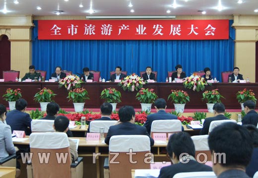 4月22日,日照市旅游产业大会在市政府二楼会议室隆重举行。省旅游局局长于冲,市委副书记、代市长李同道,市委副书记孙海亭,市人大常委会副主任高丽萍,副市长解世增,市政协副主席王坤英,日照军分区副政委严立玉出席会议。于冲、孙海亭讲话,解世增主持。