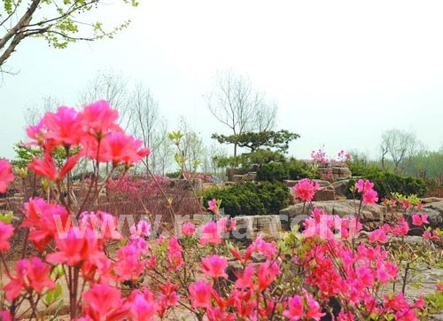 经过一段时间的紧张施工,市民期待已久的植物园岩石园,终于露出了其“羞答答的面容”。5月4日,记者来到植物园改造现场,在其东北部看到这样一幅画卷:在一片岩石中间,色彩艳丽的映山红让人眼前一亮,像是来到了久违的五莲山。 据介绍,这里是我市首个以石灰岩为主要材质的岩石园,面积达 4500平方米。造型各异的岩石之间,凌霄、扶芳藤等攀援植物,映山红、金银花、铺地柏等耐旱、耐盐碱植物,以及观赏花草、造型黑松等植物,与岩石自然融合,天然成趣,似一幅和谐悦目的“岩石画卷”。