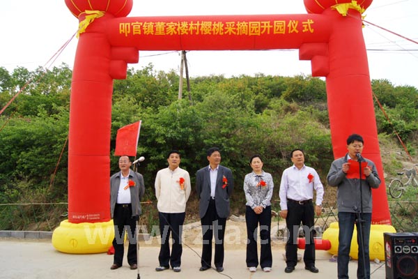 5月21日,叩官镇董家楼村采摘园开园仪式盛装启幕。日照市旅行社协会会长孙开宏,五莲县旅游局副局长陈东刚,五莲县旅游局常务副局长陈兆华,叩官镇镇长何茂东等领导出席了开幕式。