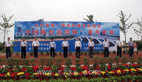 山东省体育局局长张洪涛,中共日照市委书记、日照市人大常委会主任杨军,山东省体育局副局长李政,日照市副市长孙雨,日照市政协副主席董全宏,山东省体育彩票管理中心主任蒋强,山东省体育局办公室主任张炳臣,山东省健身气功管理中心主任孙照亮出席开幕式并为参赛龙舟点睛。