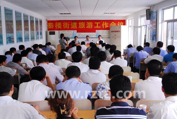 7月14日上午,日照市秦楼街道旅游工作会议在乔家墩子民俗旅游村召开。会议主要围绕民俗旅游村的建设目标和发展要求展开,部署今年各街道旅游工作。东港区政府副区长姜毅、大学城管委会副主任、秦楼街道党委书记迟玉国、东港区旅游局局长王海洲出席会议,秦楼街道办事处主任范玉棠主持会议。秦楼街道15个民俗旅游村的支部书记、村主任,街道机关包村干部,区旅游、工商、公安、卫生、物价、消防、边防、交通、交警联合执法队伍人员参加了会议。