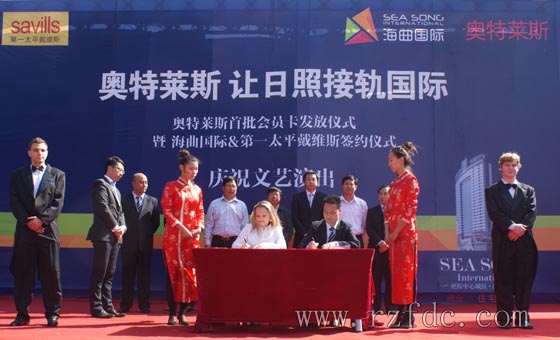 10月15日上午,“奥特莱斯首批会员卡发放仪式暨海曲国际&第一太平戴维斯签约仪式”在海曲国际接待中心广场隆重举行。
