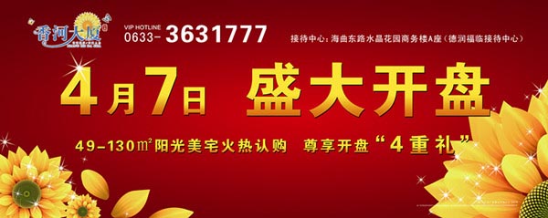 安泰·香河大厦4月7日即将盛大开盘 认购火热进行中,够惠金卡尊享开盘特惠四重礼 49.9㎡阳光一居、85—95㎡雅致两居、100—110㎡舒畅三居、130㎡豪华四居浓情呈现 在阳光四溢的春天,香河大厦即将迎春绽放,盛开在无限斑斓的季节 阳光教育、阳光环境、阳光户型 在香河大厦的每一天,生活都与阳光相伴 项目地址:山东路以北,昭阳路以西 接待中心:海曲东路水晶花园商务楼A座(德润福临接待中心) 详询:0633-3631777、8267888