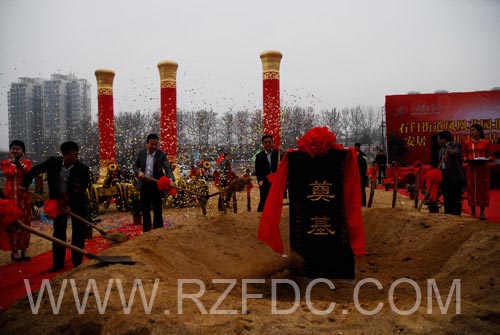 荣安集团董事长刘加楼发表致辞,对本次工程进行了重点介绍。街道党委书记鲁守春和区政府副区长李建富仙后发表重要讲话,表示对项目寄以高度的希望和认可,并宣布凤凰花园北片区安居工程项目开工,在场的各位领导共同为凤凰花园北片区安居工程进行奠基培土,礼花齐放,鞭炮齐鸣,锣鼓喧天,在热烈的氛围中,奠基仪式完美落幕。