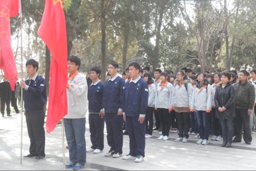 在庄严与肃穆的氛围下,学生代表为烈士敬献花圈,全体默哀,学生代表宣读倡议书,学生党员重温入党誓词,瞻仰烈士陵墓和日照暴动纪念馆。暴动馆里,在一幅幅留下烈士英容笑貌的图片前,在一段段介绍英雄事迹的文字前,在一件件珍贵的实物前,同学们驻足观看,神情严肃,仿佛已置身于那硝烟弥漫的战场上,惊心动魄的战斗中,感受了革命先烈的英雄壮举、勇往直前的豪迈气概和视死如归的革命精神,共同经历了一次心灵洗礼。
