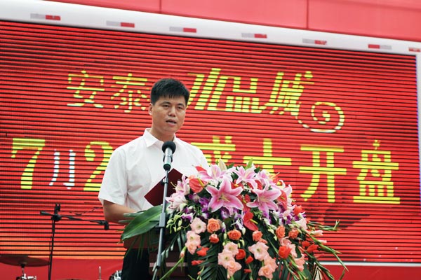 2012年07月21日,安泰水晶城于万众瞩目中绚丽开盘,数千名嘉宾齐聚水晶城项目售楼处广场,在悠扬的乐曲中开启属于自己的优雅省会,会上安泰集团总经理别振远先生从建筑品质、物业管理以及市场前景几个方面,向业主朋友介绍了安泰集团对水晶城项目倾注的思考与努力.