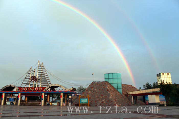 8月27下午6时许,阵雨过后,一道彩虹横跨在刘家湾赶海园景区上空,光彩夺目。约十分钟后,出现双虹奇观,七彩双虹环绕景区,争奇斗艳,与景区交相呼应,自然天成,绚丽多姿。
