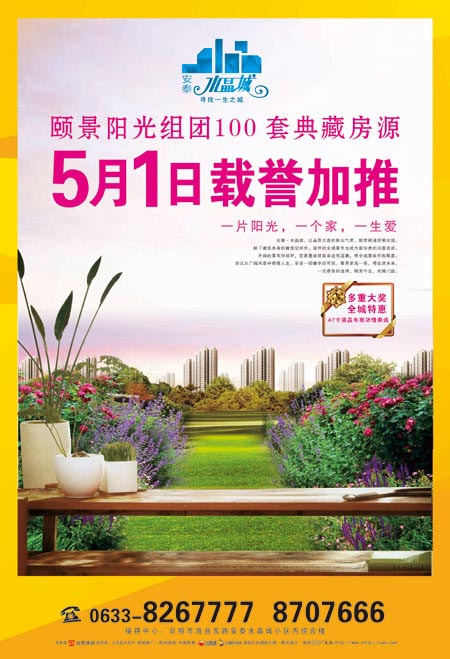 安泰水晶城---颐景阳光组团 100套典藏房源5月1日载誉加推! 电话:0633-8267777/8707666