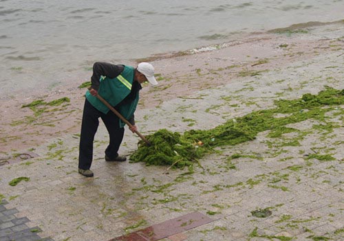 据介绍,该中心从6日开始组织清理浒苔,当天清理约10吨,7日清运约30吨。“今天也少不了30吨。”该工作人员说。