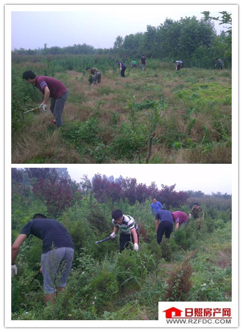 6月22日,以亲近大自然,放松身心,体验农间生活为目的,同时为了在公司内部弘扬热爱劳动、尊重劳动、崇尚劳动的良好风气,公司组织房产、物业全体员工共计100人来到牟家小庄项目部进行了为期一天的义务劳动,这次活动由公司领导班子亲自带队,分为8组,其中两个女员工小组给苹果树套膜,6个男员工小组进行松柏地除草工作。