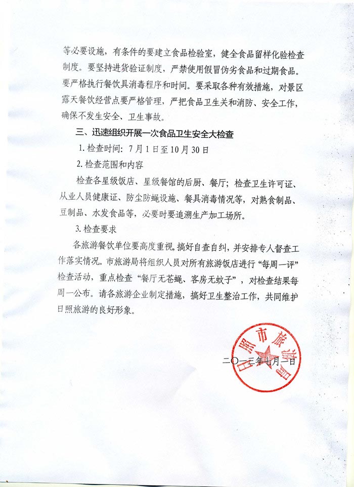 关于在全市旅游行业开展食品卫生整治百日行动的通知(2013年07月08日)