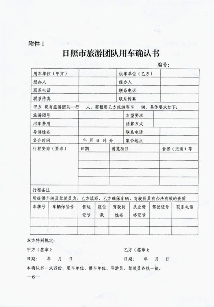 点击查看附件 1.日照市旅游团队用车确认书 2.日照市旅游客运车辆运输情况报表 3.日照市旅行社租用旅游车辆情况报表