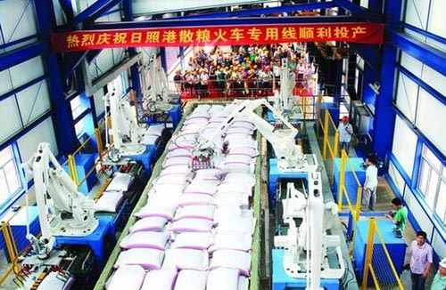 首条机器人码包作业线亮相日照港(2013年10月26日)