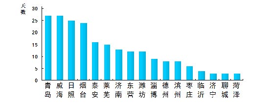 10月山东17市“蓝天数”排名 日照25天居第三(2013年11月15日)