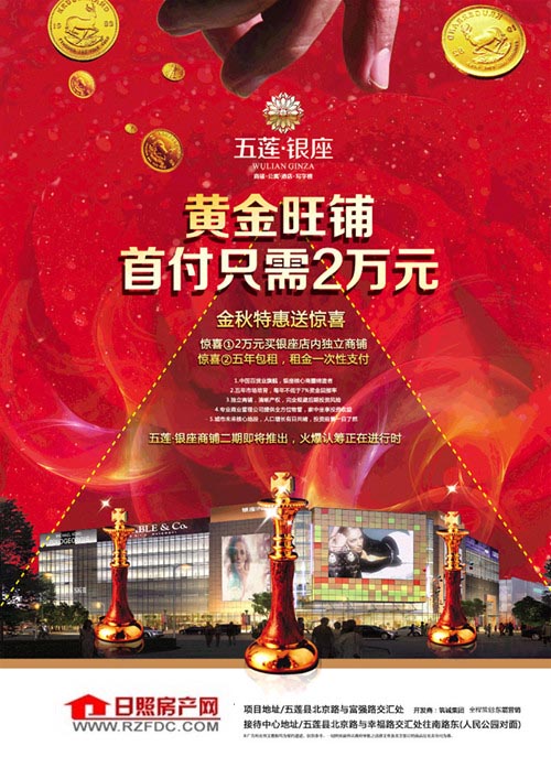 五莲·银座,黄金旺铺,首付只需2万元。金秋特惠送惊喜: