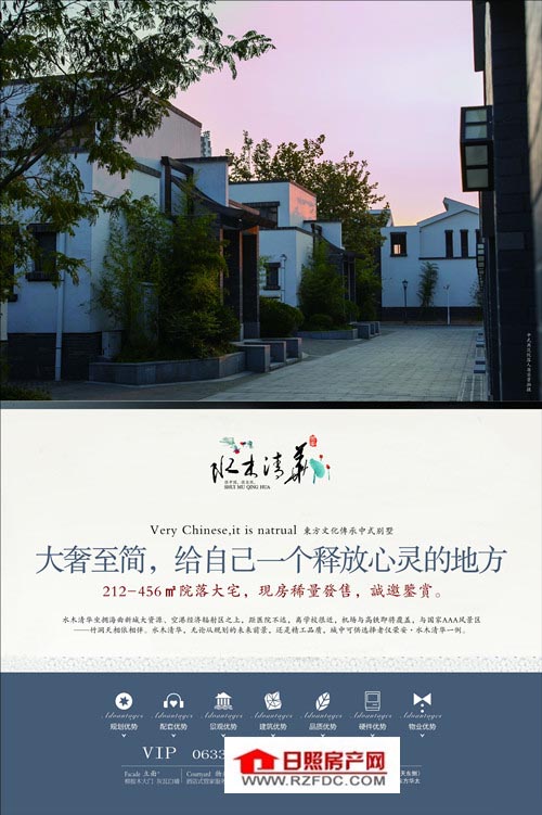 荣安•水木清华——大奢至简,给自己一个释放心灵的地方。212-456㎡院落大宅,现房稀量发售,诚邀鉴赏! 相关链接: 项目处于日照市委市政府着力打造的日照市西部旅游度假带的核心位置,西部旅游度假带是以竹洞天旅游风景区为核心向西辐射,以竹文化为看点的集旅游、度假、休闲、购物为一体的大型旅游度假区。同时到老城区的繁华地带驱车不过10分钟,百货大楼、银座商城、利群商城、中医院、邮政局、学校一应俱全,无论是购物、休闲娱乐,还是上学就医,都是咫尺之遥。