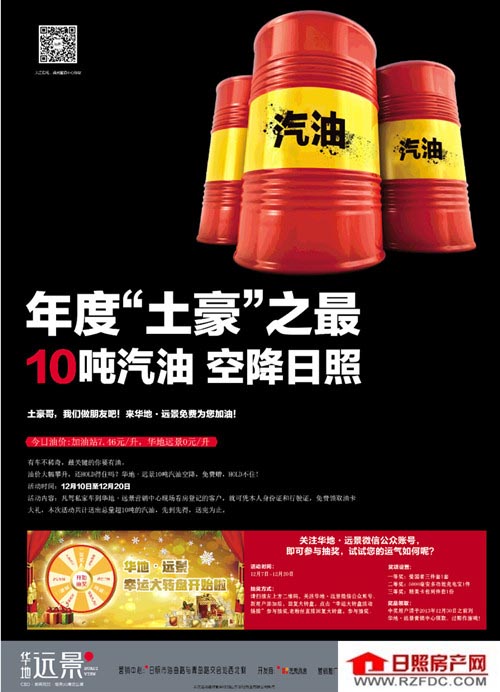 华地·远景10吨汽油空降日照 今日8:30开抢(2013年12月10日)