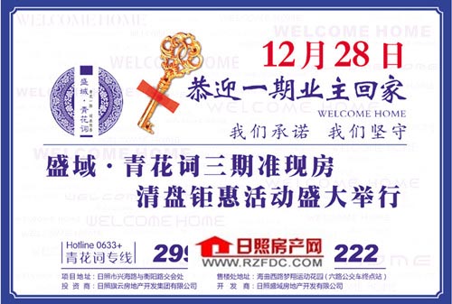 盛域·青花词12月28日恭迎一期业主回家!盛域·青花词三期准现房,清盘钜惠活动盛大举行!